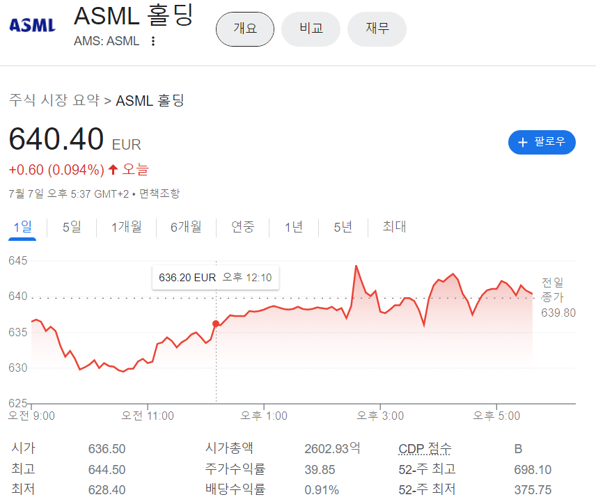 ASML은 네덜란드에 본사가 있는 글로벌 기업입니다. 반도체 제조에 극자외선 노광장비(EUV) 기술을 유일하게 보유하고 있는 회사입니다. 노광은 빛을 이용해 웨이퍼에 빛을 이용해서 회로를 새겨주는 작업을 말합니다. 이를 다른 말로 리소그래피 라고 합니다. EUV 기술은 파장이 매우 짧은 빛을 이용하여 실리콘 웨이퍼에 복잡한 패턴을 식각함으로써 더 작고 강력한 마이크로칩을 생산할 수 있습니다. ASML의 리소그래피 시스템은 정밀도, 정확도 및 반도체 시장의 날로 증가하는 수요를 충족시키는 능력으로 유명합니다.